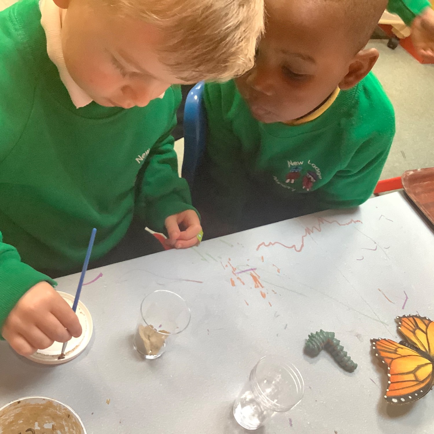 Today we fed our caterpillars. We first had to put their food into the containers and then gently put each caterpillar in. We had to remember to put the lid on tight so they would not crawl out.
